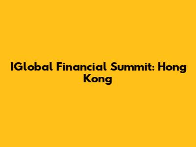 IGlobal Financial Summit: Hong Kong