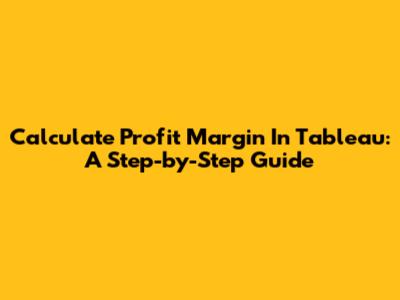 Calculate Profit Margin In Tableau: A Step-by-Step Guide