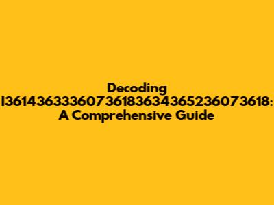Decoding I36143633360736183634365236073618: A Comprehensive Guide