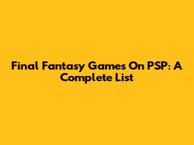 Final Fantasy Games On PSP: A Complete List