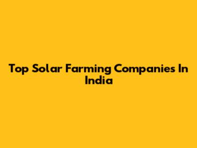 Top Solar Farming Companies In India