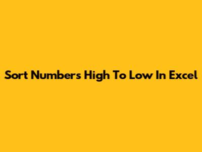 Sort Numbers High To Low In Excel