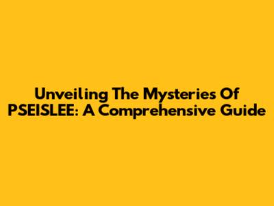 Unveiling The Mysteries Of PSEISLEE: A Comprehensive Guide