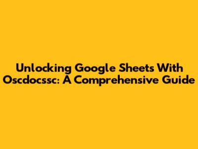 Unlocking Google Sheets With Oscdocssc: A Comprehensive Guide