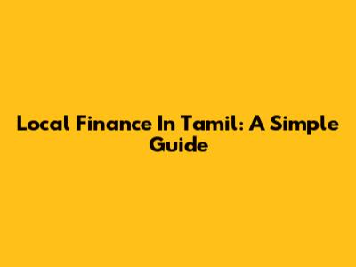Local Finance In Tamil: A Simple Guide