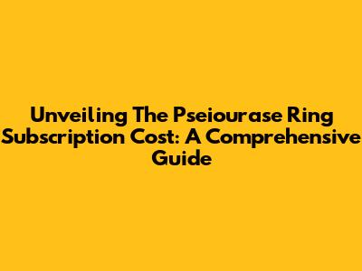 Unveiling The Pseiourase Ring Subscription Cost: A Comprehensive Guide