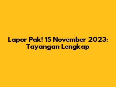 Lapor Pak! 15 November 2023: Tayangan Lengkap