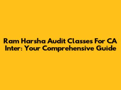 Ram Harsha Audit Classes For CA Inter: Your Comprehensive Guide