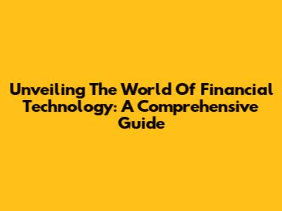 Unveiling The World Of Financial Technology: A Comprehensive Guide