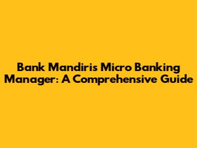 Bank Mandiri's Micro Banking Manager: A Comprehensive Guide