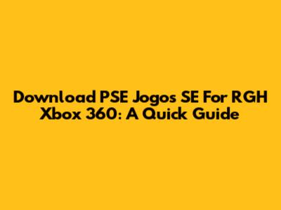 Download PSE Jogos SE For RGH Xbox 360: A Quick Guide