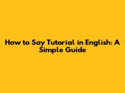 The Basic English Translation of "Tutorial"