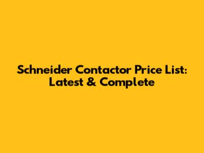 Schneider Contactor Price List: Latest & Complete