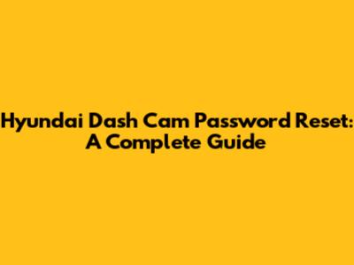 Resetting Your Hyundai Dash Cam Password: Step-by-Step Guide