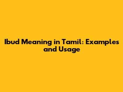 What Does "Ibud" Mean in Tamil?