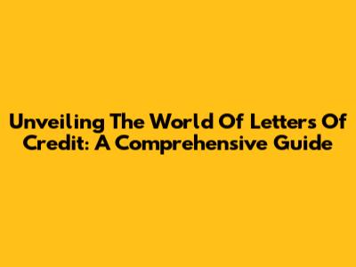 Unveiling The World Of Letters Of Credit: A Comprehensive Guide