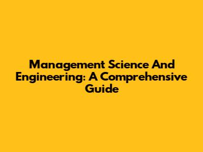 Management Science And Engineering: A Comprehensive Guide