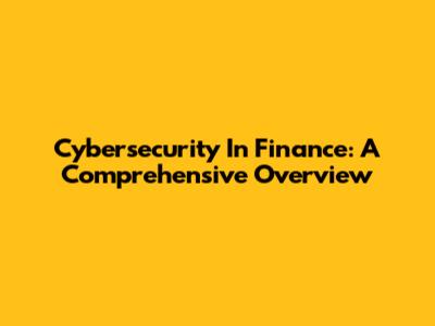 Cybersecurity In Finance: A Comprehensive Overview