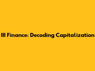 Hey finance enthusiasts! Ever heard the term "capitalization" thrown around in the world of III Finance, and felt a bit lost? Don't sweat it, because we're about to break it down. Understanding capitalization is super important, whether you're a seasoned investor, a startup founder, or just someone trying to wrap their head around financial concepts. We'll explore the meaning of capitalization in III Finance, its significance, and how it impacts businesses. So, let's dive in and demystify this crucial financial term together.