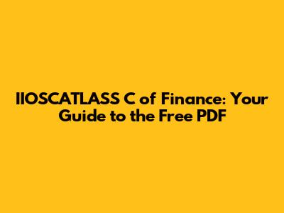 Hey finance enthusiasts! Ever heard of the IIOSCATLASS C of Finance? If you're knee-deep in the world of financial markets, investments, and economic principles, chances are this name rings a bell. And if you're looking for a free PDF version to dive into, you've come to the right place. Let's get down to brass tacks: finding a free and reliable PDF of the IIOSCATLASS C of Finance can be a game-changer for your studies or professional development. This comprehensive guide will walk you through everything you need to know about accessing this valuable resource. We'll explore where you can find the PDF, what to watch out for, and why this particular book is so highly regarded in the finance world. Buckle up, guys, because we're about to embark on a journey through the ins and outs of the IIOSCATLASS C of Finance and how to get your hands on it – for free!