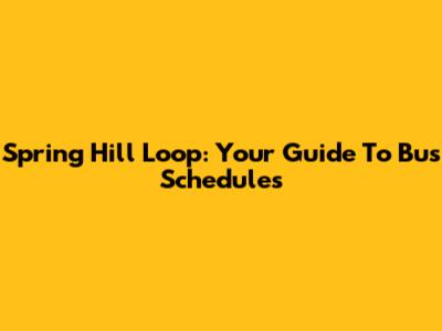 Spring Hill Loop: Your Guide To Bus Schedules