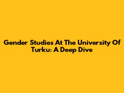 Gender Studies At The University Of Turku: A Deep Dive
