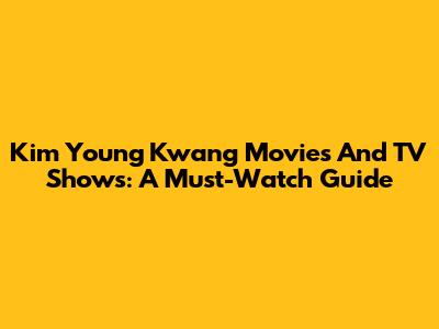 Kim Young Kwang Movies And TV Shows: A Must-Watch Guide