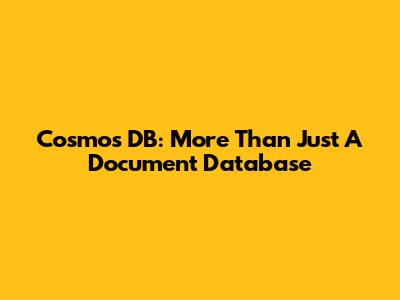 Cosmos DB: More Than Just A Document Database