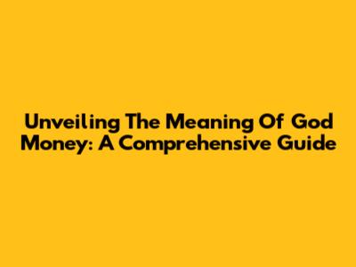 Unveiling The Meaning Of God Money: A Comprehensive Guide