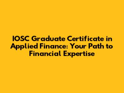 Hey finance enthusiasts! Ever thought about leveling up your career game in the world of finance? The IOSC Graduate Certificate in Applied Finance might be just what you need! This certificate program is designed to equip you with the practical skills and knowledge to excel in various finance roles. Let's dive in and explore what this certificate is all about, what it offers, and how it can help you achieve your career goals. This program is super helpful, whether you're just starting out or looking to make a career switch. Let's face it; finance can seem intimidating, but this certificate breaks it down into manageable chunks. You'll gain a solid understanding of financial principles, learn how to analyze financial data, and develop the ability to make informed investment decisions. This is all about practical skills that you can use on day one. With the rapidly evolving financial landscape, a deep understanding of applied finance is more critical than ever. The IOSC Graduate Certificate in Applied Finance provides a focused and practical curriculum that addresses the current needs of the financial industry. You'll gain a competitive edge in today's job market by mastering key concepts and developing essential skills.
