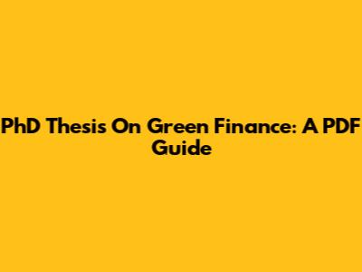 PhD Thesis On Green Finance: A PDF Guide