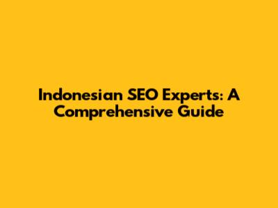 Indonesian SEO Experts: A Comprehensive Guide