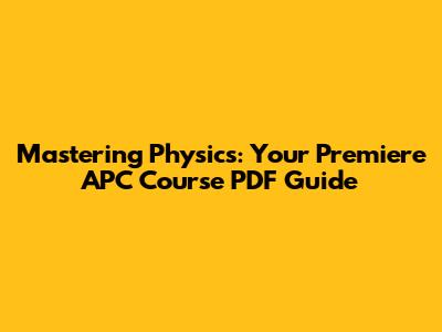 Mastering Physics: Your Premiere APC Course PDF Guide
