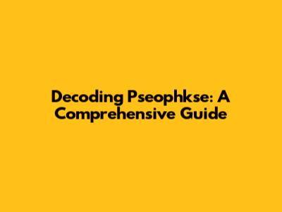 Decoding Pseophkse: A Comprehensive Guide