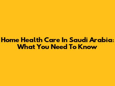 Home Health Care In Saudi Arabia: What You Need To Know