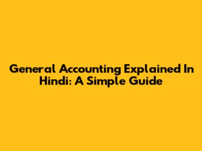 General Accounting Explained In Hindi: A Simple Guide