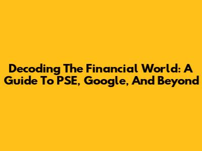 Decoding The Financial World: A Guide To PSE, Google, And Beyond