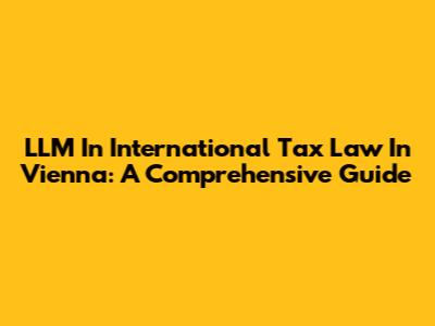 LLM In International Tax Law In Vienna: A Comprehensive Guide