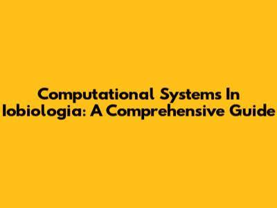 Computational Systems In Iobiologia: A Comprehensive Guide