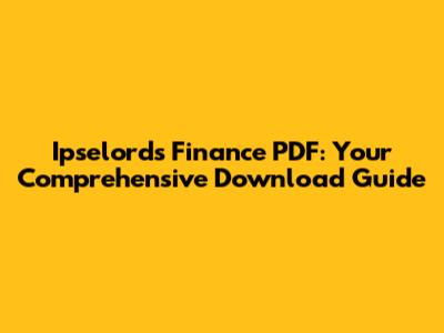 Hey guys! Ever found yourself diving deep into the world of finance and wishing you had a straightforward, easy-to-understand guide? Well, you're in luck! We're going to explore everything about the Ipselords Finance PDF, a resource that can seriously up your finance game. Whether you're a student, an entrepreneur, or just someone keen on getting their finances in order, this guide will walk you through what the Ipselords Finance PDF is all about, why it’s super useful, and, most importantly, how to download it. Buckle up, because we're about to make finance a whole lot less intimidating!
