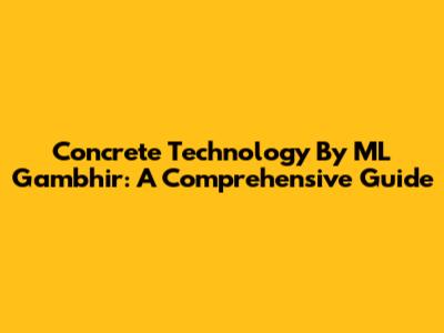 Concrete Technology By ML Gambhir: A Comprehensive Guide