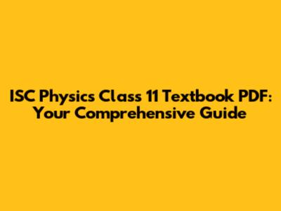Hey guys! Are you diving into the fascinating world of ISC Physics Class 11? You've probably realized by now that having the right textbook is super important. In this article, we'll explore everything you need to know about getting your hands on a ISC Physics Class 11 textbook PDF, why it's beneficial, what to look for, and how to make the most of it. Let's get started!