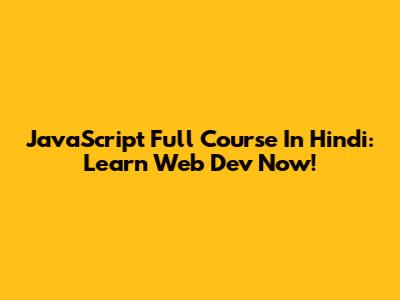 JavaScript Full Course In Hindi: Learn Web Dev Now!