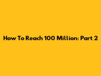 How To Reach 100 Million: Part 2