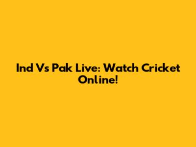 Ind Vs Pak Live: Watch Cricket Online!