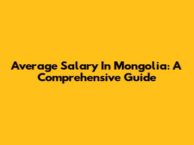 Average Salary In Mongolia: A Comprehensive Guide