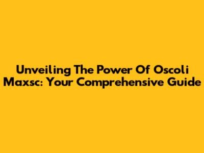 Unveiling The Power Of Oscoli Maxsc: Your Comprehensive Guide