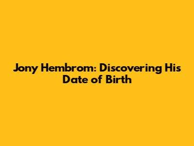 Knowing Jony Hembrom's date of birth might seem like a simple piece of information, but it’s often the starting point for understanding more about a person's background, career, and impact. Birthdates can be crucial for biographies, historical records, and even just satisfying the curiosity of fans. This article dives into why knowing someone's date of birth is significant and how we can go about finding this information, especially when dealing with public figures like Jony Hembrom.