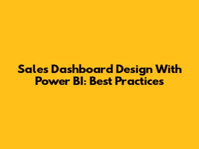 Sales Dashboard Design With Power BI: Best Practices