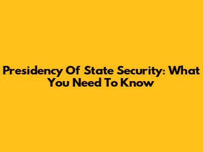 Presidency Of State Security: What You Need To Know